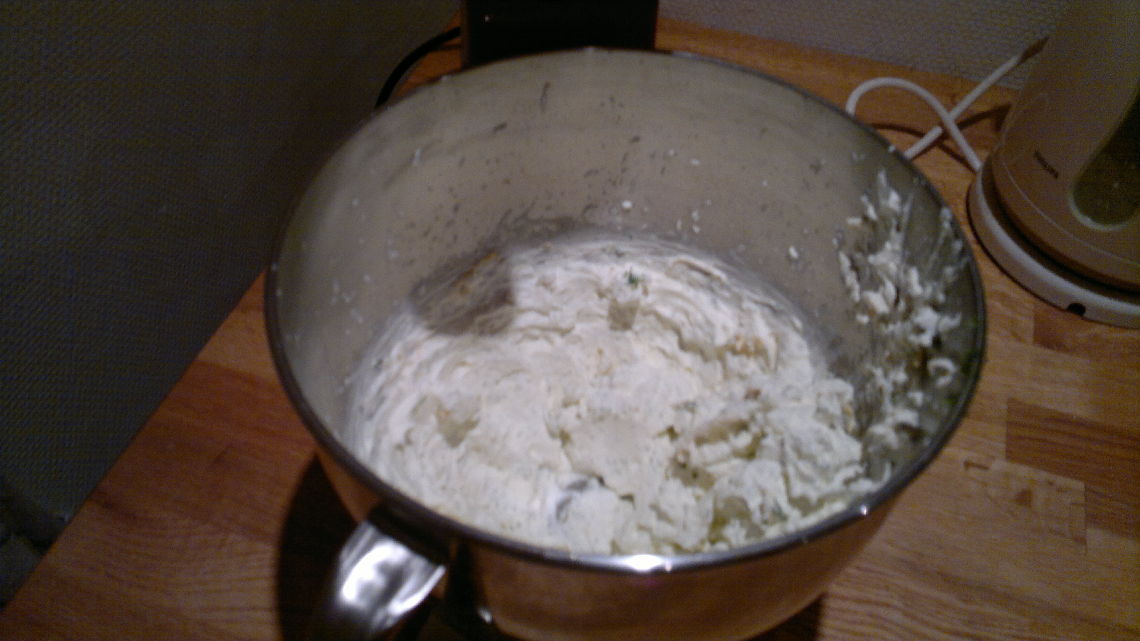 Pisk cremefraicheblandingen til skum, til det ligner flødeskum. Vend hakket dild i, og stil det i køleskabet