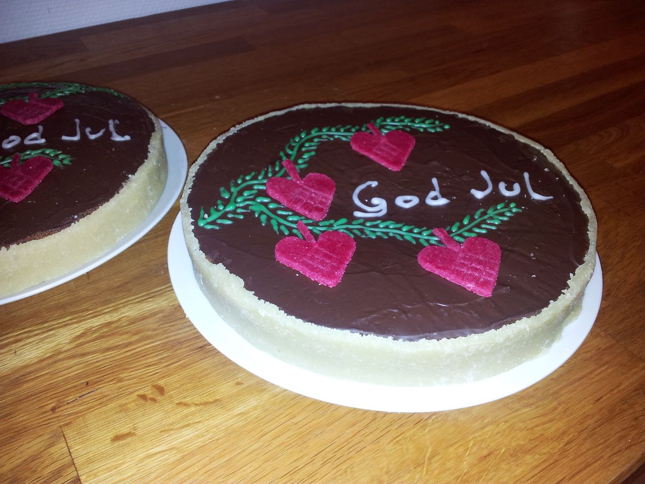 Den er meget flot når den bliver pyntet med chokoladeovertræk og marcipan.